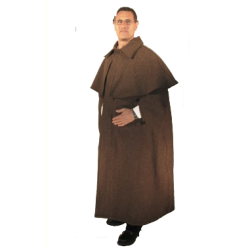 Cape de berger Le Laboureur. Cette cape et surcape en marron chiné dit burel en 100% drap pure laine burel cardée, sans colorant ni produit chimique.Surcape de berger amovible. Deux passe-main avec fermeture par boutons marronHauteur milieu dos 120 cm.Coloris marron burel.Poids 600gTailles unique.FABRICATION FRANCAISE.
